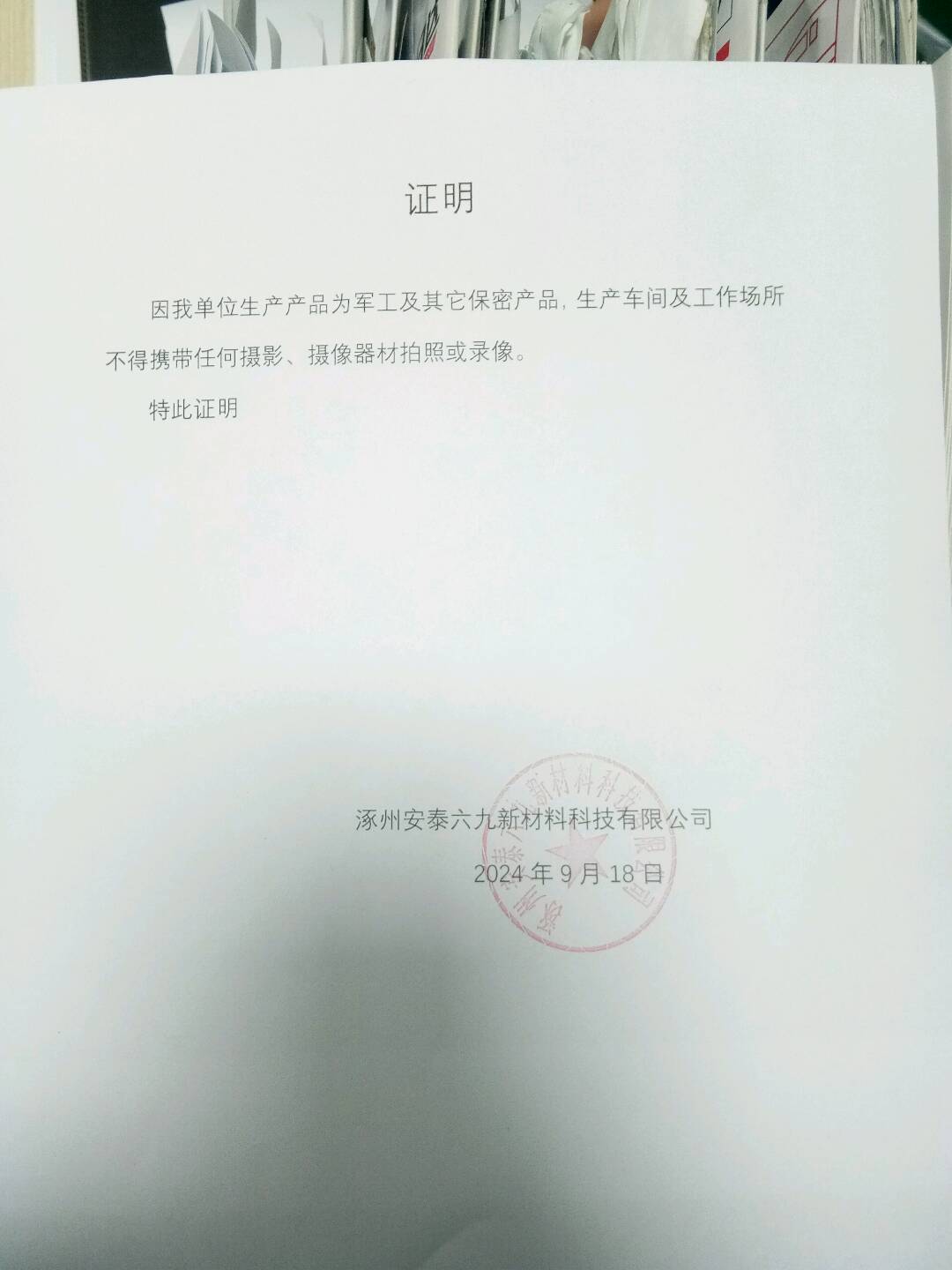 | 现场调查人员 | 孙岩、张伟 | 用人单位陪同人 | 姚伟 | 时间 | 2024-09-18 |