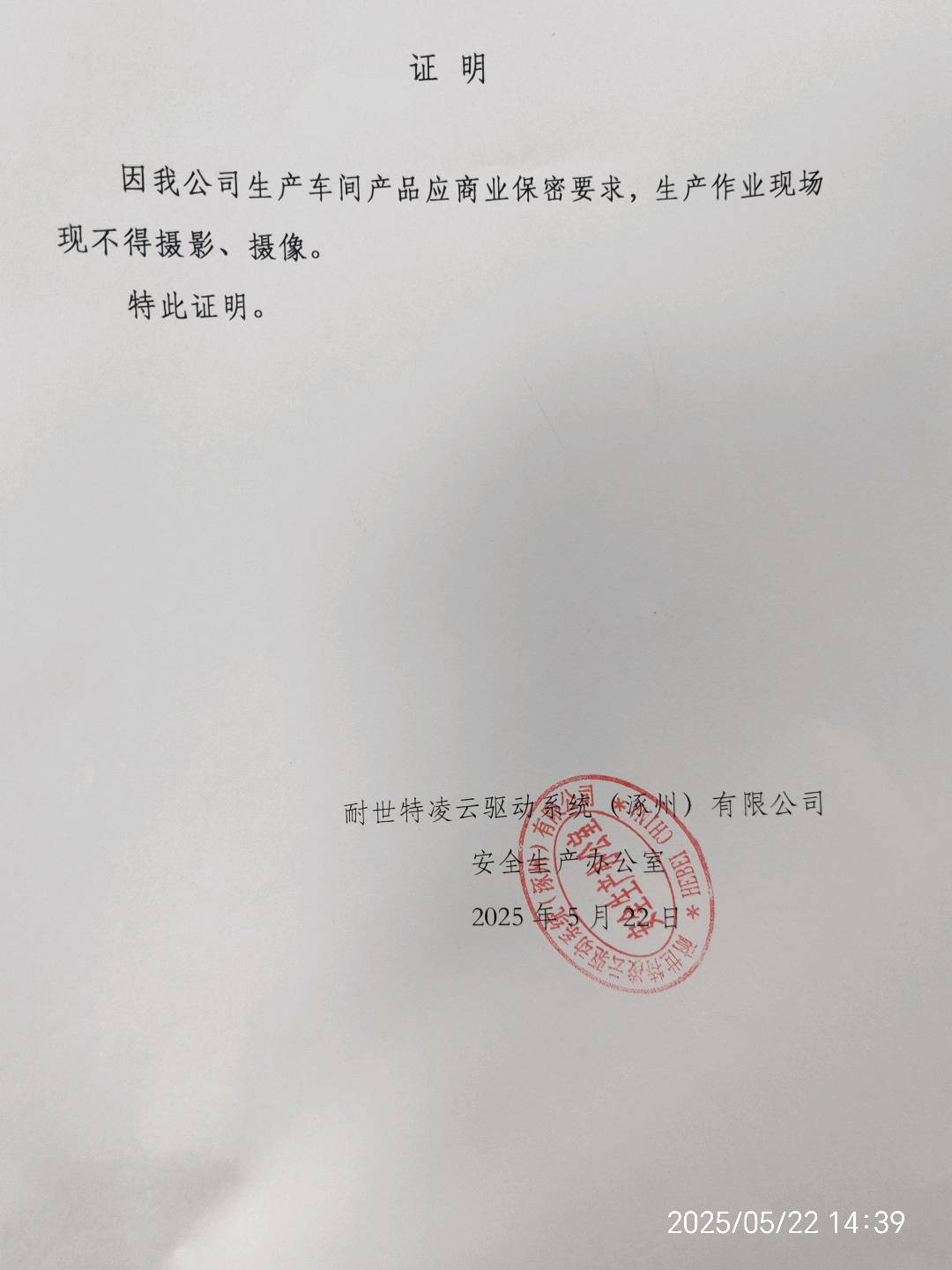 | 现场调查时间 | 2025-05-22 | 用人单位陪同人 | 杨聪玲 | ||